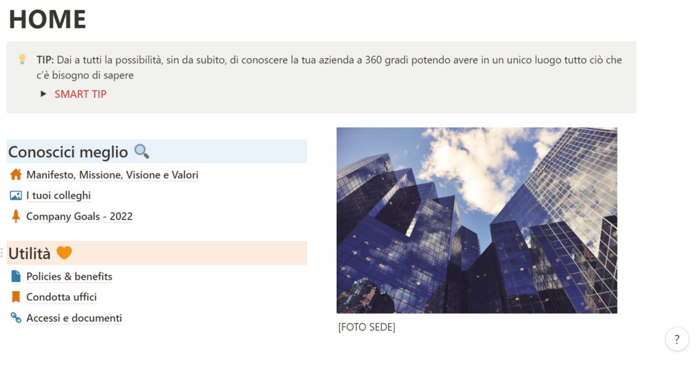 🏠 Una parte dedicata alle informazioni utili per chi entra nella vostra azienda.